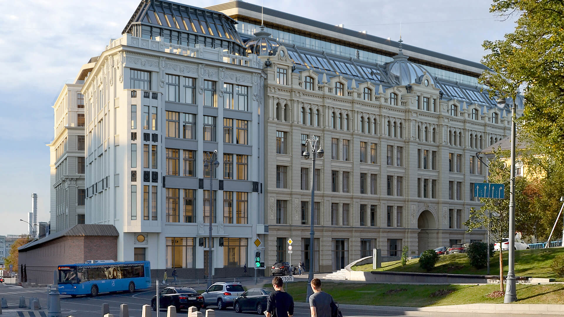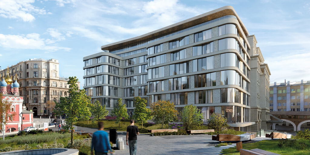 Архитектурное решение подчёркивает гармонию с окружающей средой: апартаменты открываются видами на исторические памятники и парк Зарядье, а фасады создают визуальный диалог между современными архитектурными приёмами и богатой текстурой исторической Москвы.