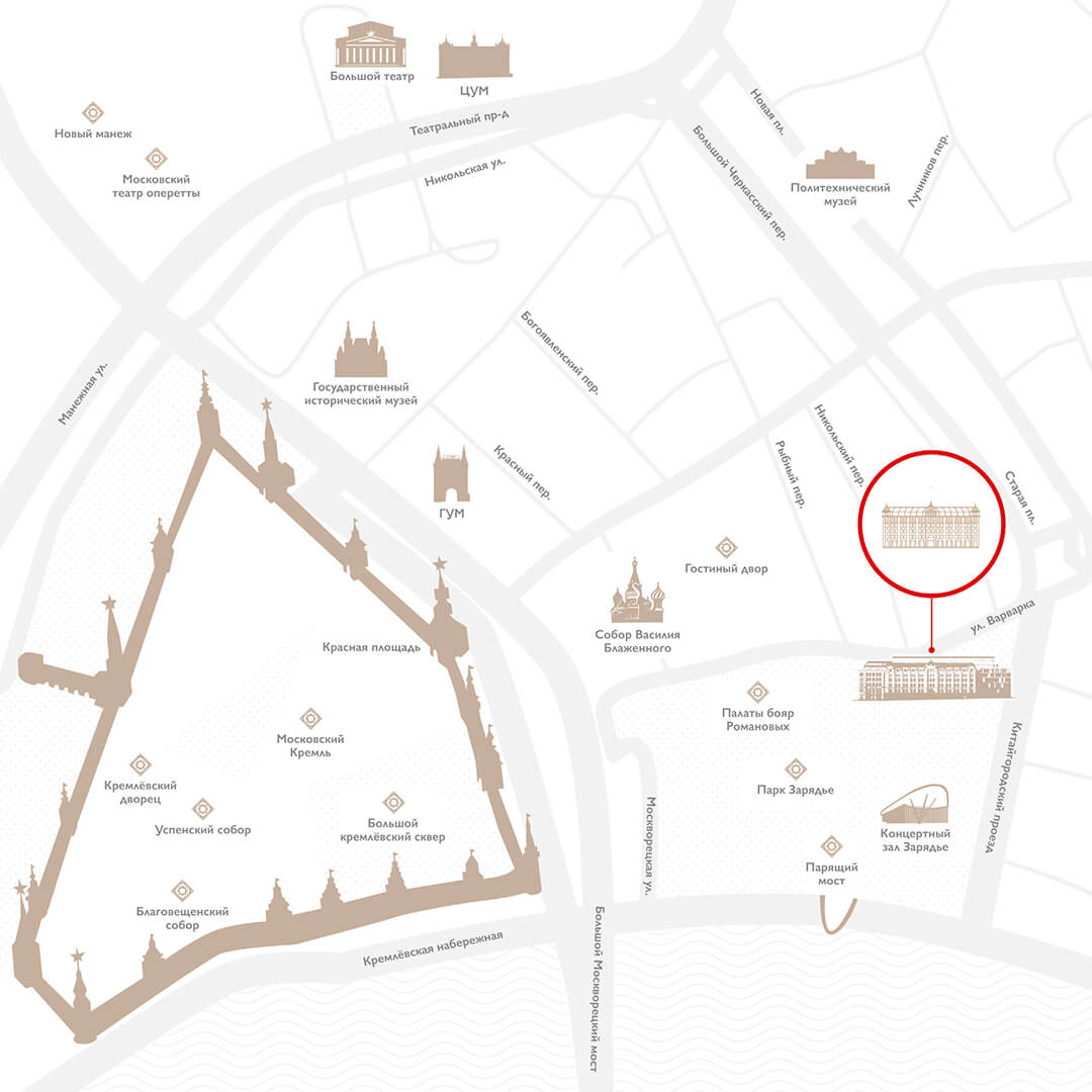 Близость к таким знаковым памятникам, как Собор Василия Блаженного, Храм Христа Спасителя и сталинские высотки, а также историческая улица Варварка, придаёт локации особый смысл — это не просто центр, это культурное ядро города, совершенное для жизни.